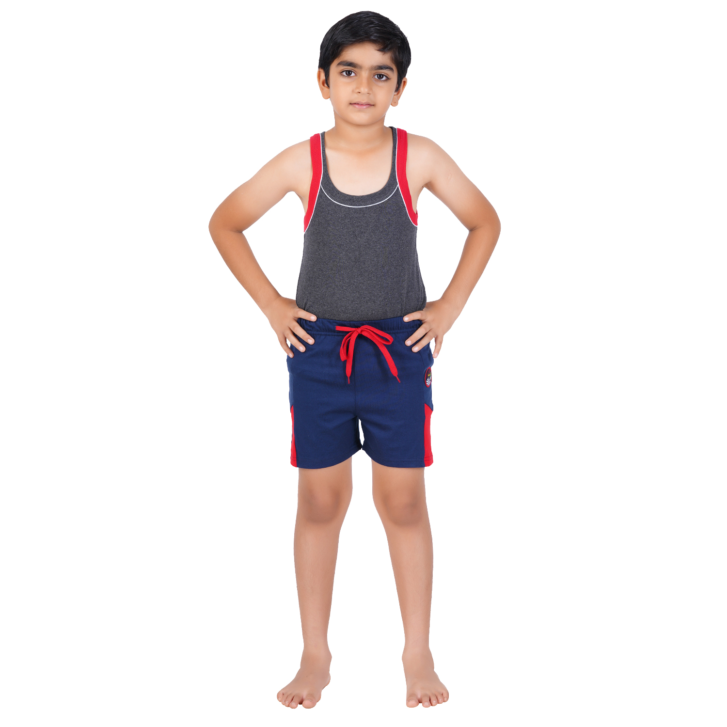 Boy's Premium Combed Cotton Solid Shorts with Contrast Side Panel-Navy