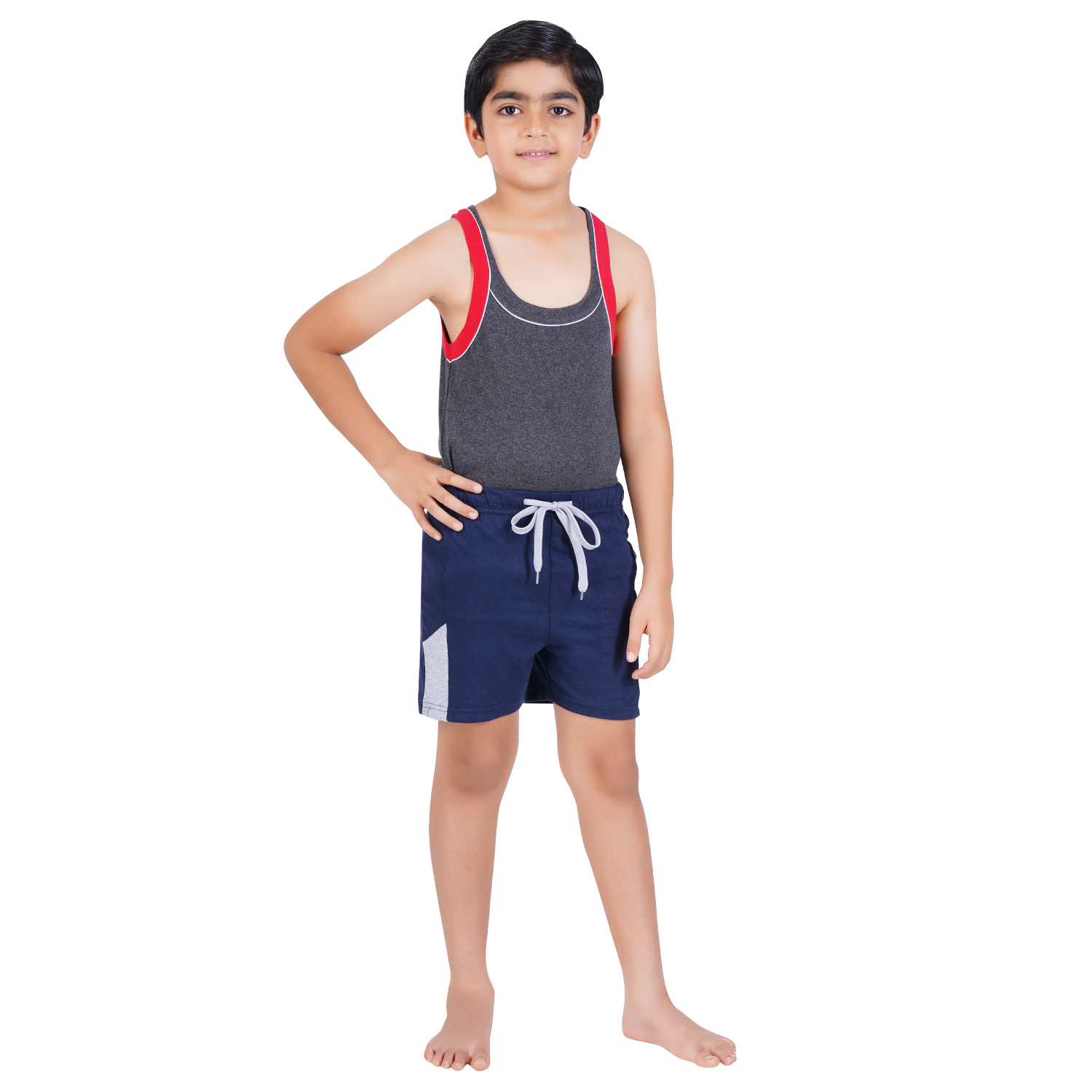 Boy's Premium Combed Cotton Solid Shorts with Contrast Side Panel - Navy2