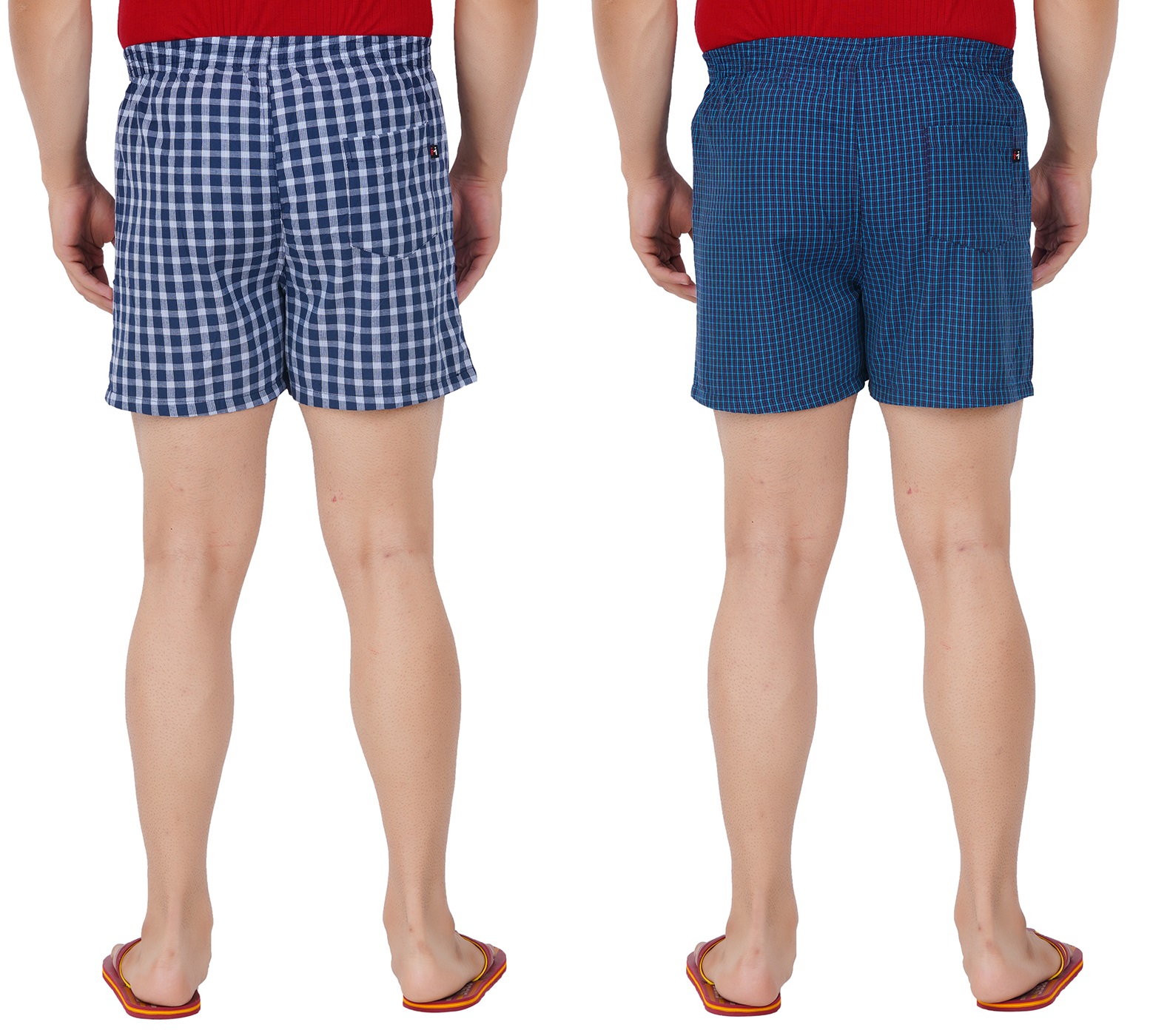 Men's Combed Cotton Woven Checkered Boxer Shorts - Multi Color Checks (Pack of 2)