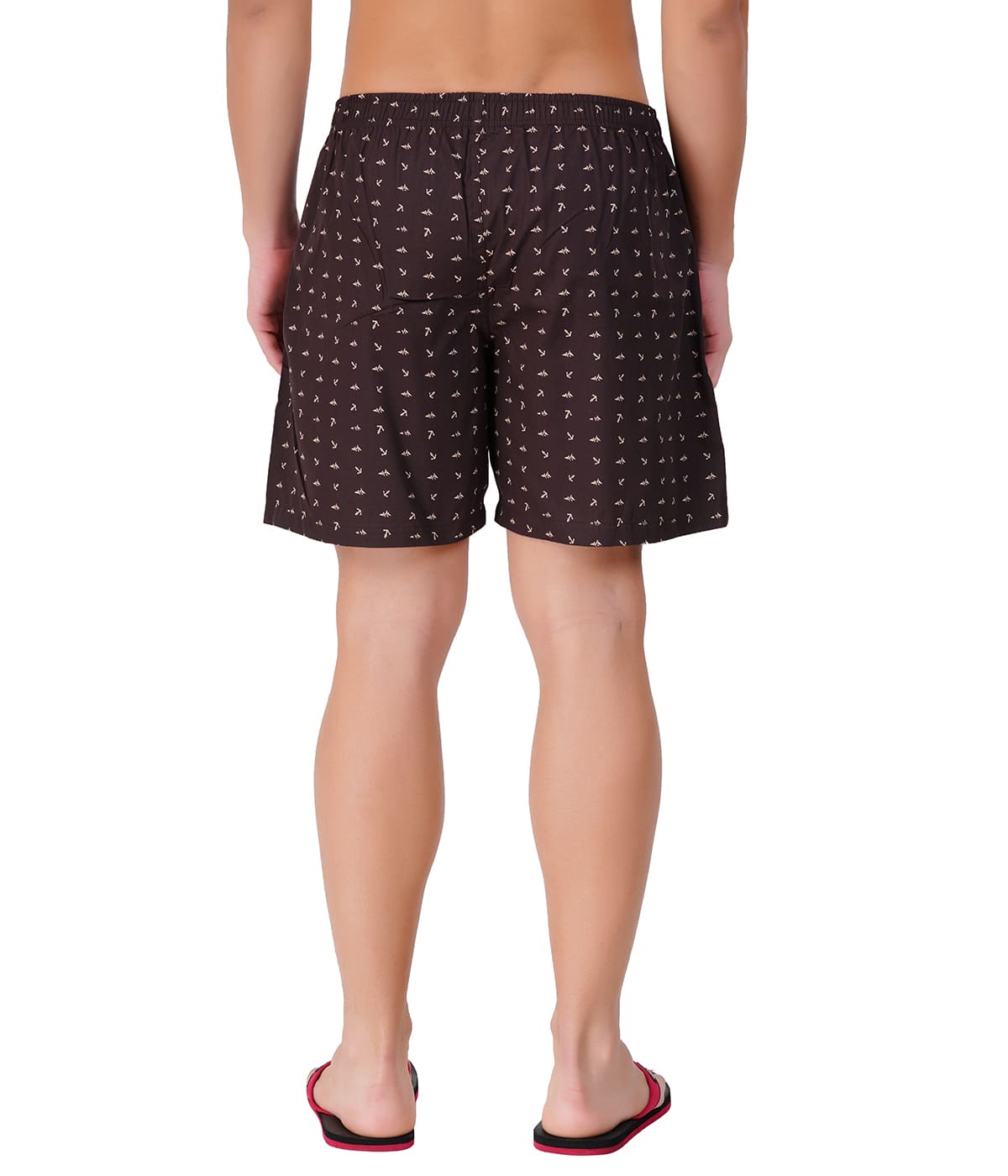 Men's Combed Cotton Woven Printed Boxer - Brown Anchor