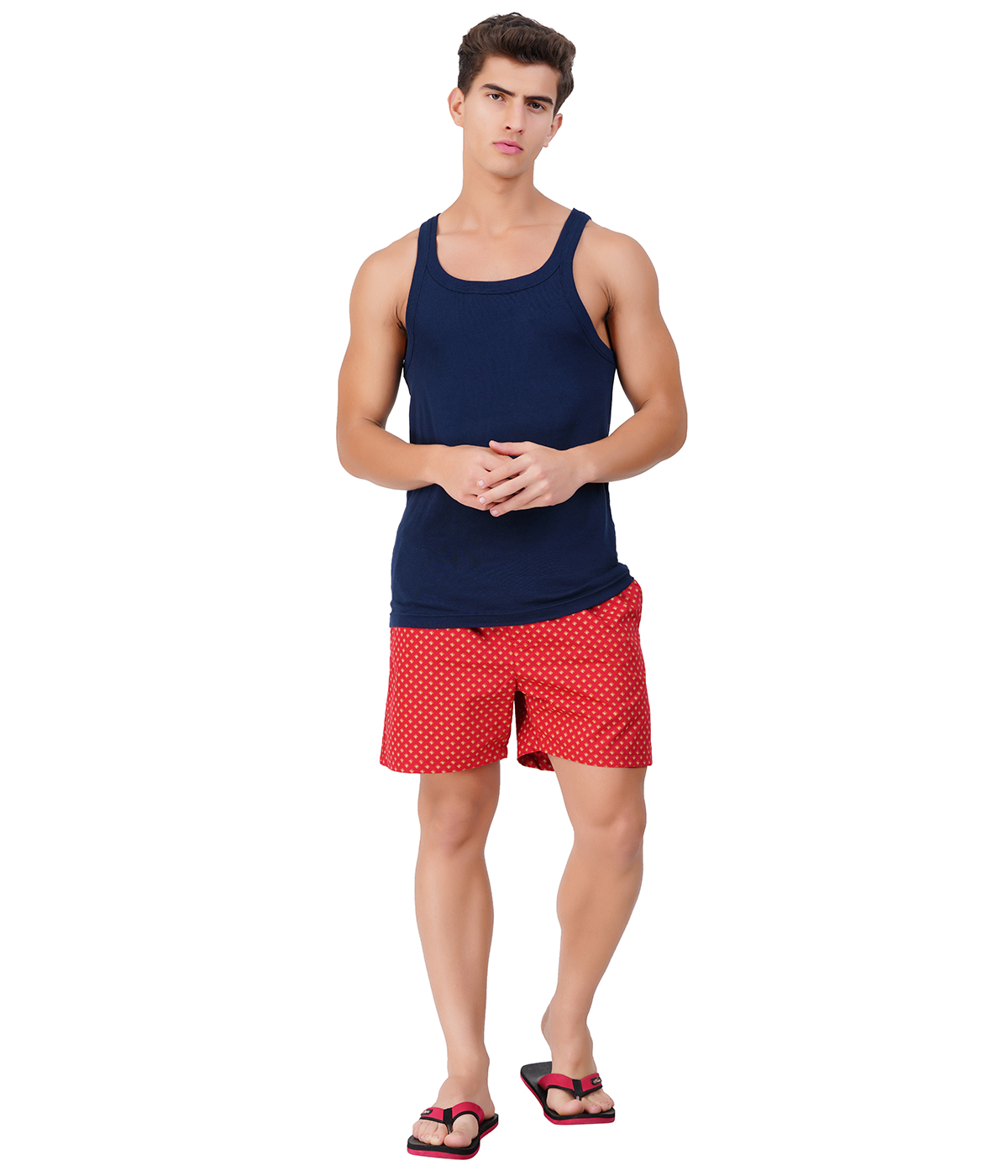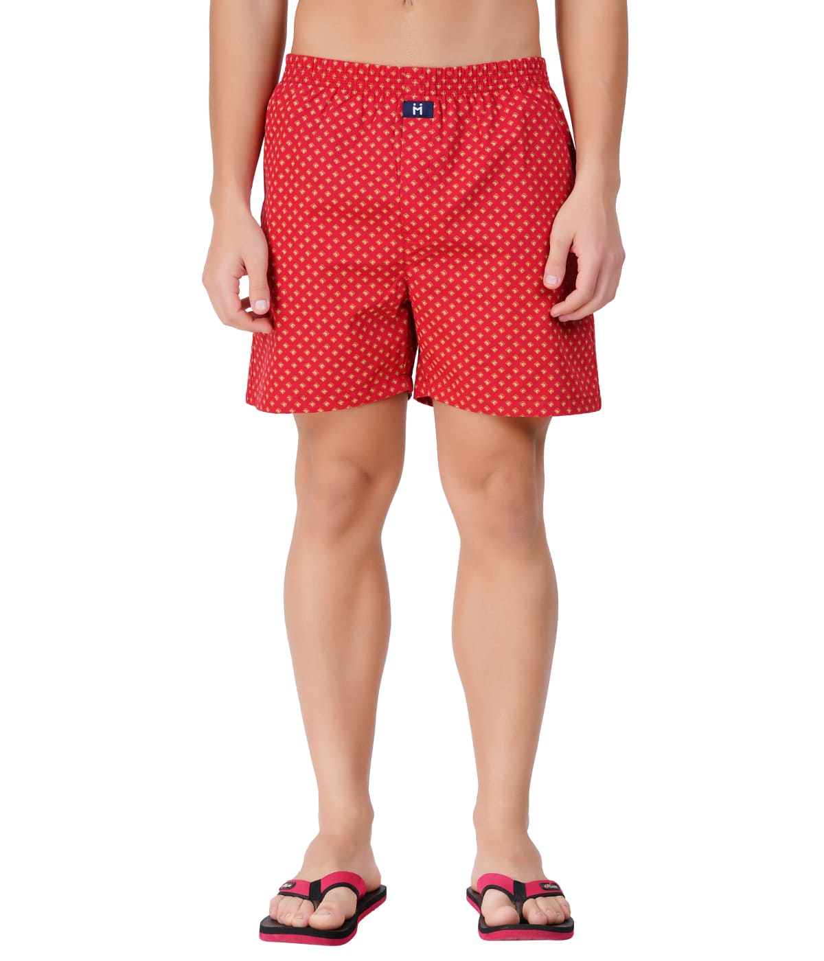 Men's Combed Cotton Woven Printed Boxer Shorts - Maroon Diamond