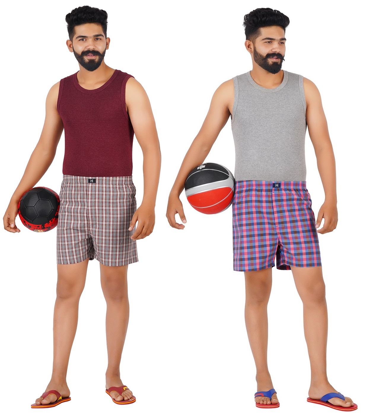 Men's Combed Cotton Woven Checkered Boxer Shorts - Multicolour (Pack Of 2)